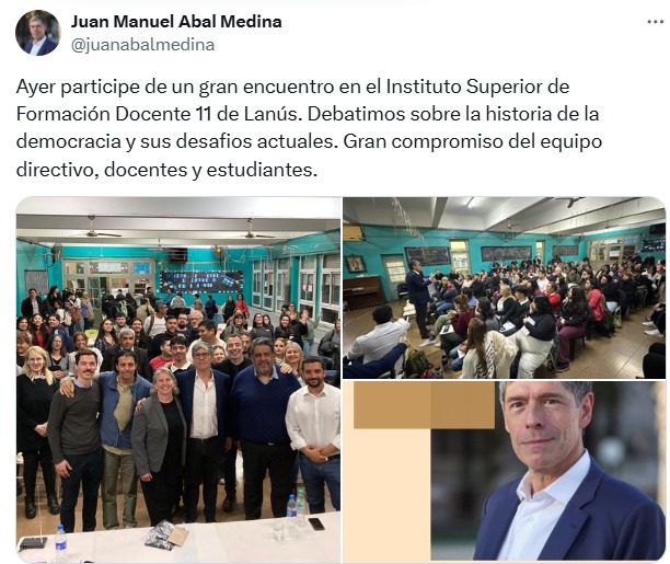 El Dr. Juan Manuel Abal Medina, reconocido politólogo de nuestro país, transformó el salón de actos en un aula en la que se debatió acerca de la historia de la democracia y de sus desafíos actuales. La claridad y calidez del orador hicieron de la jornada un momento de mucho aprendizaje. Agradecemos la gestión de nuestros profesores del Prof. de Ciencia Política, Prof. Clara Yanacone y Prof. José Buza, por la gestión y felicitamos a nuestros/as estudiantes por su participación activa en la charla.
