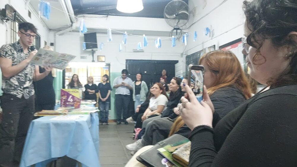 El pasado sábado 28 de Mayo, día de las/os docentes del Nivel Inicial en memoria de Rosario Vera Peñaloza, se realizó un encuentro de Tain con estudiantes de 1ro y 2do año de la carrera de Inicial. En esta ocasión tuvimos la grata visita de Pablo Médici (Brocha), docente, autor e ilustrador de libros infantiles. Compartimos con ustedes algunas imágenes de ese momento.